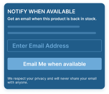 Customers can subscribe directly from the product page by clicking the “Notify Me / Email When Available” button for out-of-stock items. Once the product is restocked, the merchant sends them an email alert.