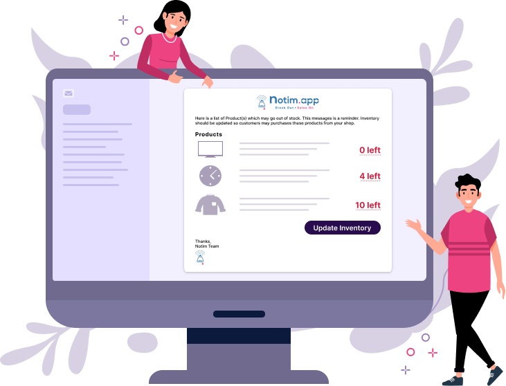 Stay ahead of stockouts with smart, customizable reminders. Notim lets you set global warning thresholds and monitor specific products or variants—triggering email alerts when inventory dips below your chosen levels. You can configure how often you get notified, restock automatically, update inventory directly from email, and include SKUs, prices, vendor names, or tags for quick context. Plus, you can assign multiple recipient emails (based on your plan) to make sure your whole team stays informed and ready to act.